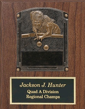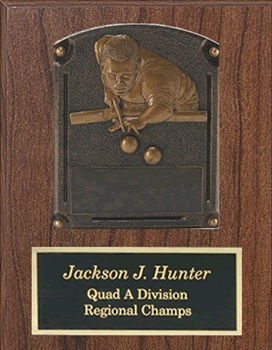 Billiards Plate Resin Trophies - Stand or Hang! 6 3/4 x 9" Only $17.95 4 1/2 x 6 1/2" Only $12.95 See Matching Billiards Plaques Below! |